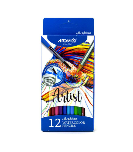 مداد رنگی 12 رنگ آبرنگی آریا آرتیست مقوایی